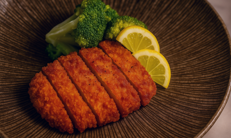 Crispy breaded chicken cutlet.
