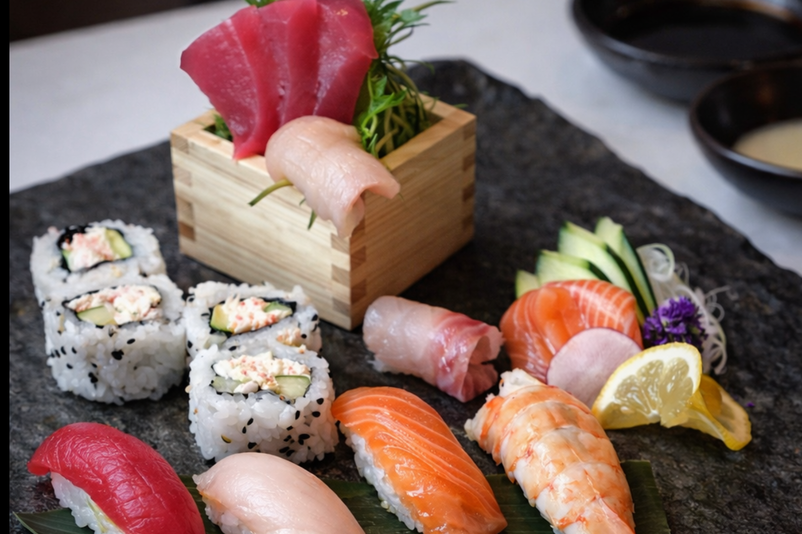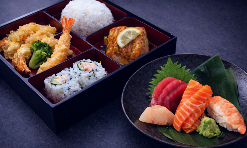 Experience a premium bento, paired with our signature Sushi & Sashimi platter